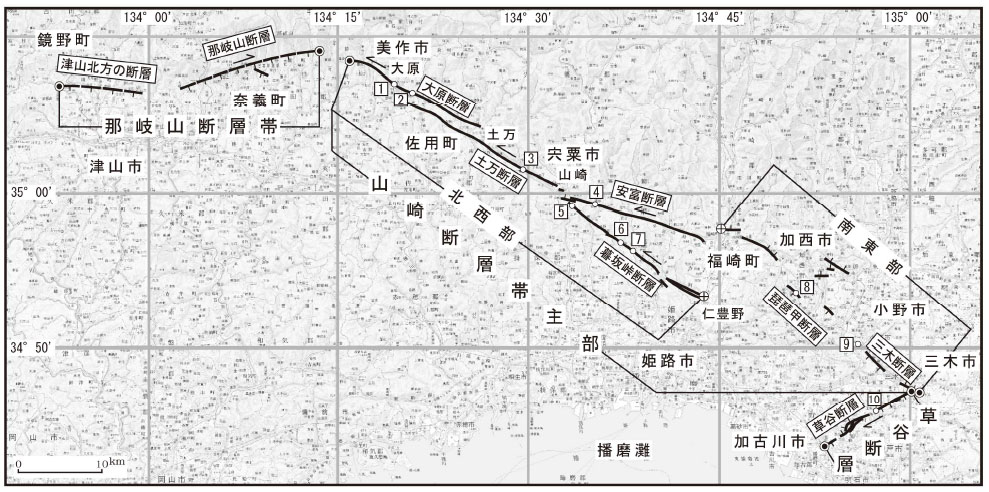 ここからは、西影さんお話の本題、山崎断層についてです。調べてみると、以下の状況です。