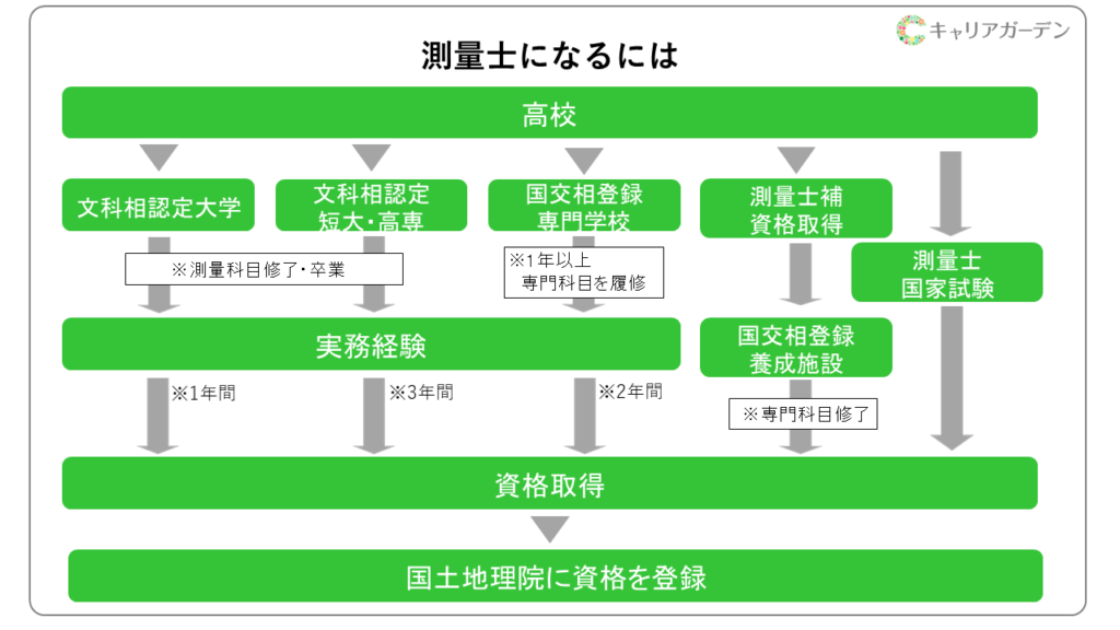 まずは、測量士になるためのルートを見てみましょう。